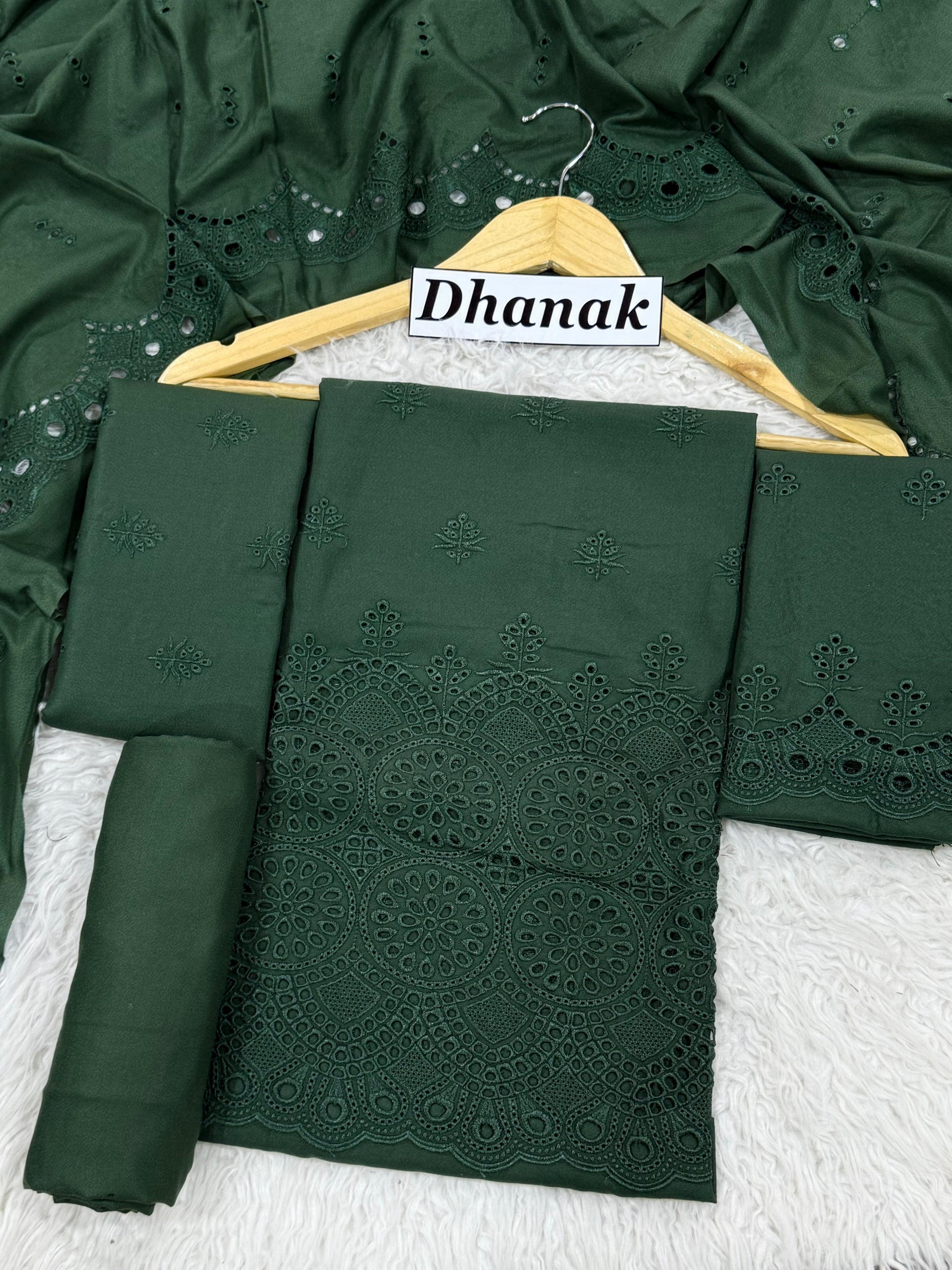 Dhanak 3pc Schiffli Boring Heavy Embroider